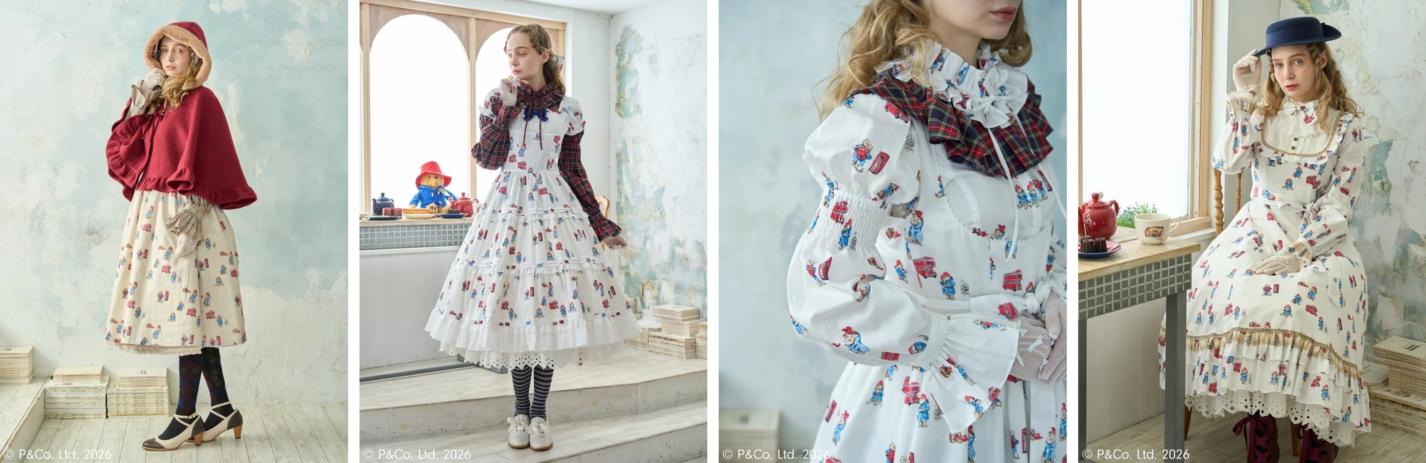 パディントン™を思わせるデザインのダッフルケープや、優雅で愛らしいクラシカルドールロングドレスなど、エレガントで上品な大人のロリータスタイルを、パディントン™の世界観が引き立てます。